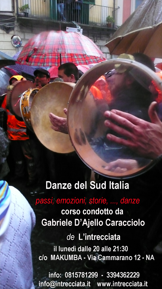 il lunedì dalle 21 alle 22.30 presso il Centro Makumba (Vomero) corso di danze del Sud Italia a cura di Gabriele D'Ajello C., ... passi, emozioni, storie ... danze
