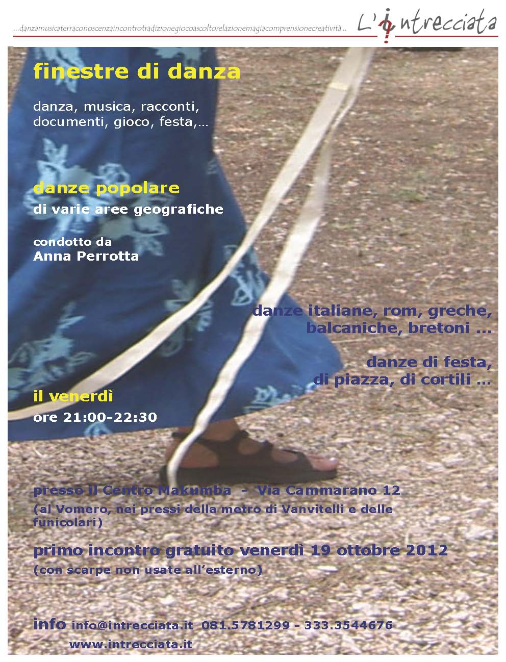il venerdì dalle 21 alle 22.30 corso di danze popolari di varie aree geografiche a cura di Anna Perrotta ... danze di festa, danze di piazza, danze di cortili ...